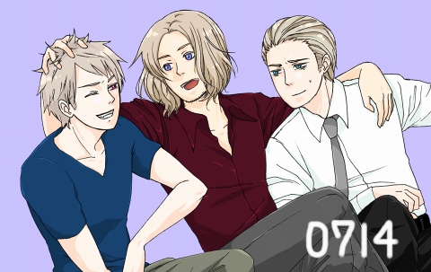 ちなみにすでにお気づきかもしれませんが、プロイセンが着ている服の色はプロイセンブラウ(プルシアンブルー)です。で、あとの2人は適当に色決めたんですけど、完成してみるとトリコロールっぽい配色になっていましたww