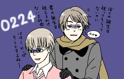 もっとちゃんと祝ってあげたかったけど、どうしてもロシアさまを描きたい気分だったから絡ませてみたらこんなことになりました。ごめんなさい…