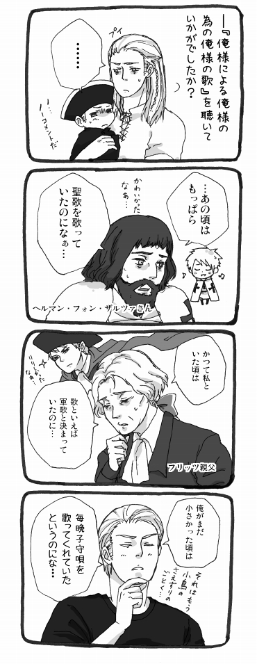 おかげでこんなアホ漫画に加え、リクの漫画1本の線画まですべて終了し、オーストリア継承戦争漫画もちょっと進んで、新しい拍手絵の下書きも3枚できました。なんたる快挙!!